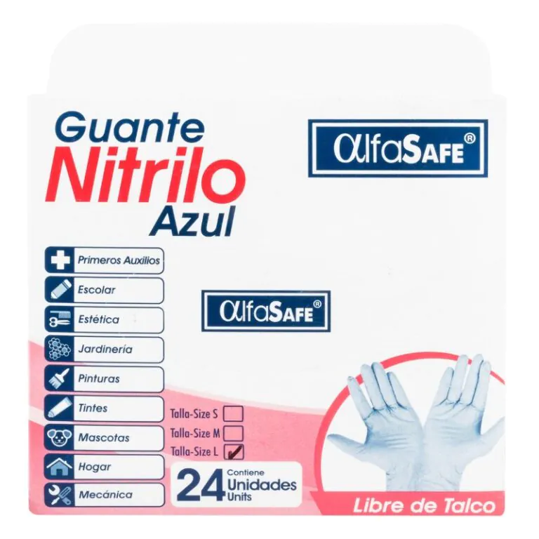 GUANTE EXAM.NITRILO AZUL ALFA T.L 24 UND